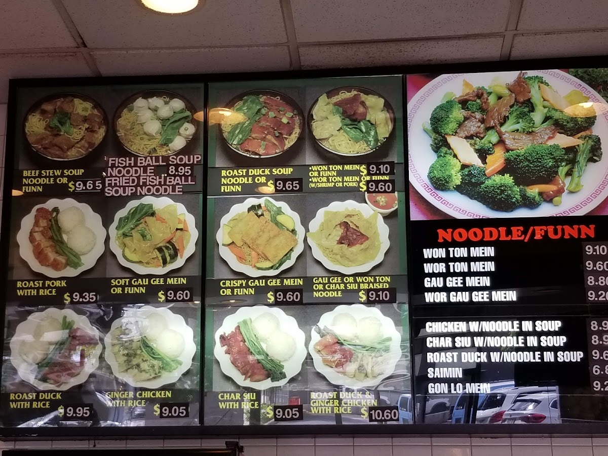 - Soup Noodles: Features a range of noodle soups including roast duck soup noodle, wonton mein, char siu soup noodle, and others. These dishes are suitable for a more substantial meal and commonly accompanied by meats such as roast duck or barbecued pork.