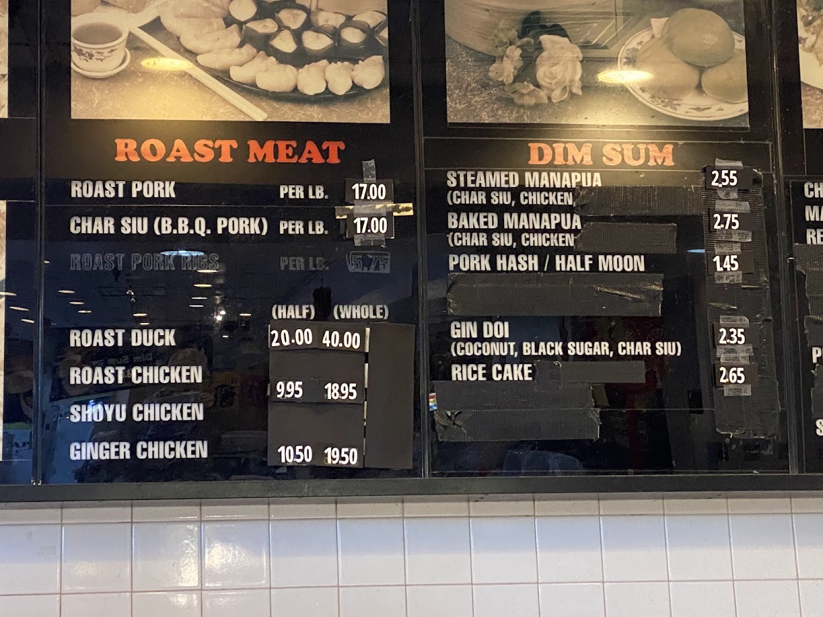 - Dim Sum: Includes small plate offerings such as steamed and baked pork buns (manapua), deep-fried shrimp dumplings, chicken feet, and rice dumplings. These items are typically served in small portions, suitable for light meals or snacks.